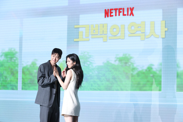 South Korean actress Shin Eun-soo and actor Gong Myung, who star in the new movie "Love Untangled," an original movie by Netflix, pose for a photo during a publicity event in Seoul on Aug. 25, 2025. The movie will be released worldwide on Aug. 29. (Yonhap)