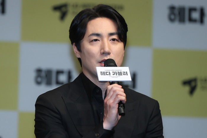 South Korean actor Lee Seung-joo, who stars in the new play "Hedda Gabler," responds to reporters' questions during a publicity event in Seoul on April 8, 2025. The play will runs from May 7 to June 8. (Yonhap)