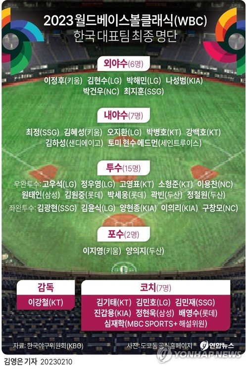 | ▲ [그래픽] 2023 월드베이스볼클래식(WBC) 한국 대표팀 최종 명단 (서울=연합뉴스) 김영은 기자 = 0eun@yna.co.kr