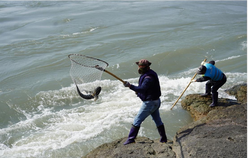 울돌목이 위치한 해남 우수영 관광지에서도 뜰채 숭어잡이가 시작됐다.