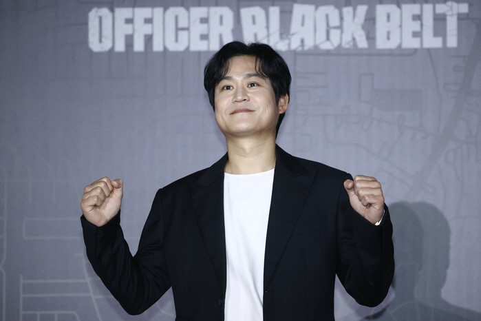 South Korean actor Kim Sung-kyun, who stars in "Officer Black Belt," an original film by Netflix, poses for a photo during a publicity event in Seoul on Sept. 10, 2024. The movie will be released worldwide on Sept. 13. (Yonhap)