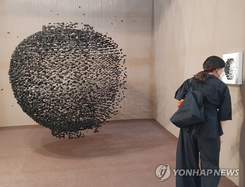 | ▲ A visitor to the annual Korean International Art Fair Seoul, South Korea's leading art fair, appreciates an artwork displayed at a booth at COEX in southern Seoul in this file photo taken Sept. 3, 2022. (Yonhap) |