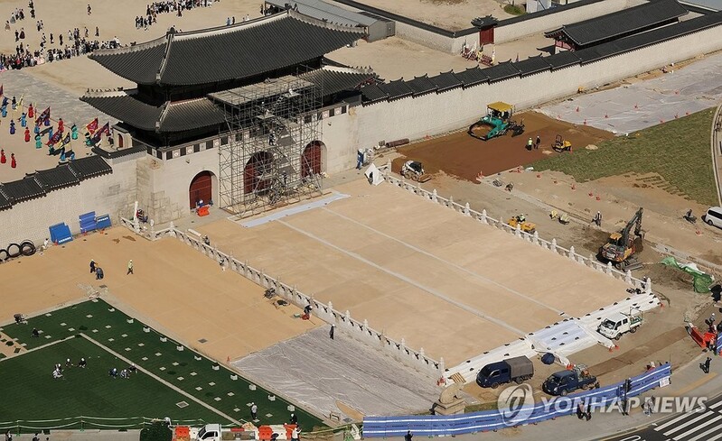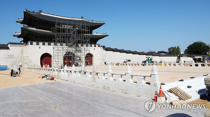 SEOUL, Oct. 12 (Yonhap) -- The ceremonial stage located in front of Gyeongbok Palace's Gwanghwamun gate in Seoul will open to the public this weekend after being restored to its original state for the first time in about a century.