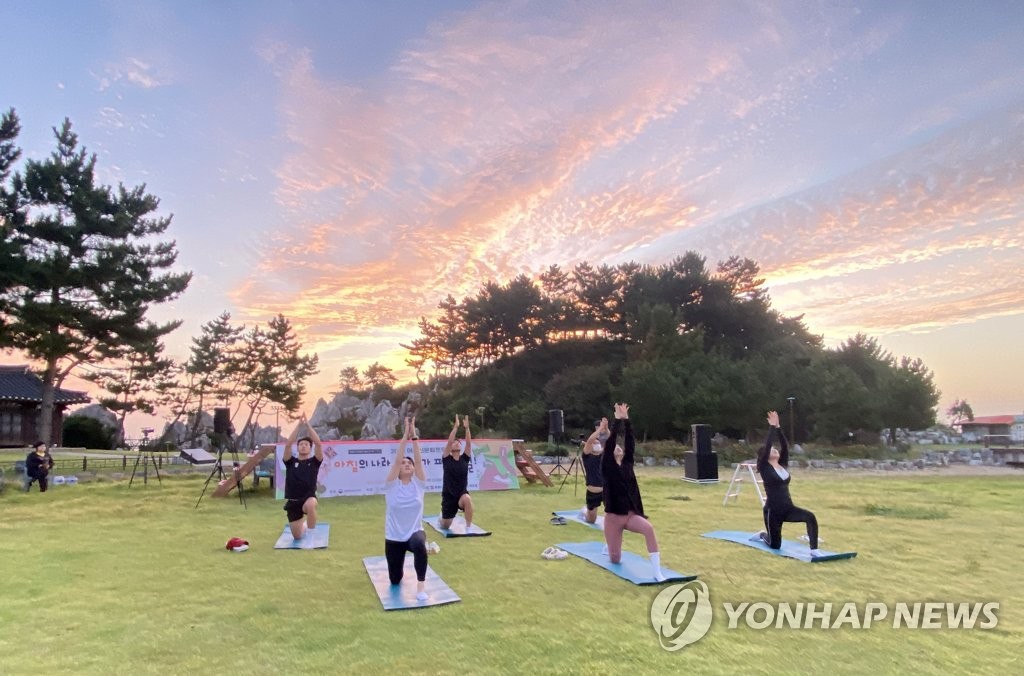 | ▲ 아침 기운 받으며 즐기는 요가 (동해=연합뉴스) 17일 촛대바위가 있는 해돋이 명소 강원 동해시 추암해변에서 열린 '2022 아침의 나라 일출 요가 페스티벌' 참가자들이 해돋이 시간에 맞춰 요가를 하고 있다. 2022.9.17 [동해문화원 제공. 재판매 및 DB 금지] photo@yna.co.kr |