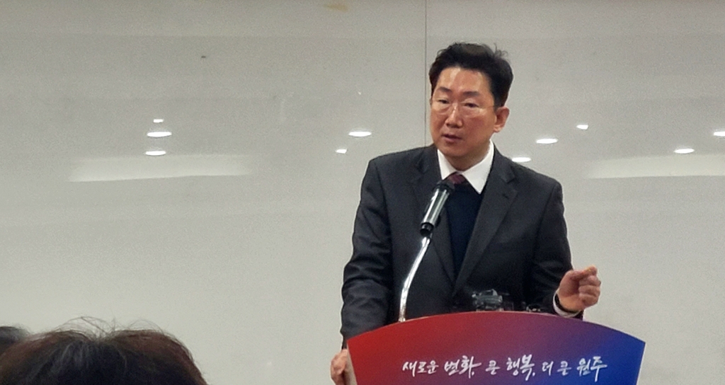 원강수 원주시장은 4일 다목적홀에서 기자회견을 열어 "원주를 기업 하기 좋은 경제도시로 육성하겠다"며 "이중·삼중으로 둘러싸고 있는 각종 과도한 규제를 혁파하고 지리적 이점과 산업 성장을 기반으로 경제 대전환을 이루겠다"고 밝혔다.
