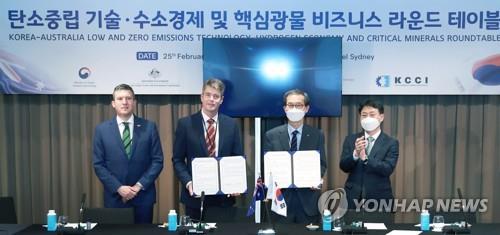 | ▲ This file photo, provided by South Korea's industry ministry on Feb. 25, 2022, shows South Korean and Australian officials posing for a photo after signing a memorandum of understanding on critical minerals and zero-emission technology in Seoul. (PHOTO NOT FOR SALE) (Yonhap) |