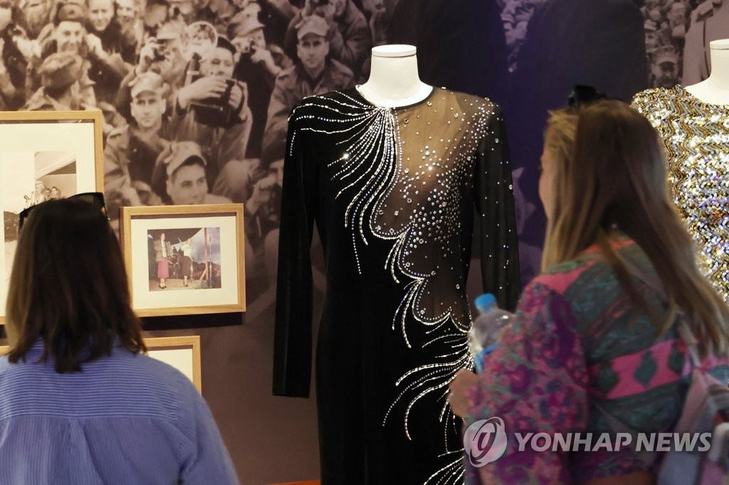 | ▲ Visitors look at stage outfits worn by Hyun Mee and Lee Geum-hee, who were some of the most popular Korean pop singers in the 1960s, on display at an exhibition, titled "The Pop Culture We Loved, and Rise of the Korean Wave," at the National Museum of Korean Contemporary History in Seoul on July 20, 2023. (Yonhap) |