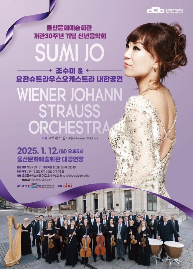 내년 1월 12일 오후 5시 울산문예회관 대공연장에서 열리는 신년 음악회에는 세계적인 소프라노 조수미, 유럽을 대표하는 클래식 오케스트라인 '요한 슈트라우스 오케스트라'가 함께한다.