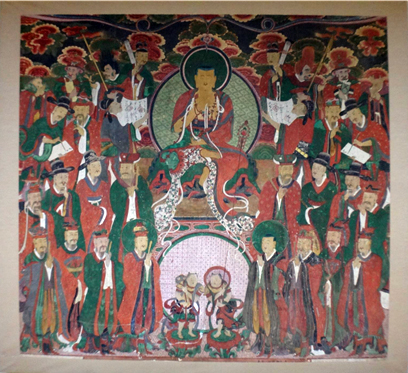 지장시왕도는 지장보살을 비롯해 시왕(사후세계에서 인간들의 죄의 경중을 가리는 심판관 10명) 등의 권속을 그린 그림이다.
