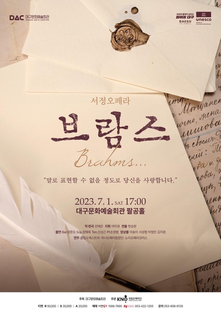 (대구=연합뉴스) 류성무 기자 = 대구문화예술회관은 다음 달 1일 오후 5시 팔공홀에서 국립오페라단의 서정 오페라 '브람스'를 무대에 올린다.