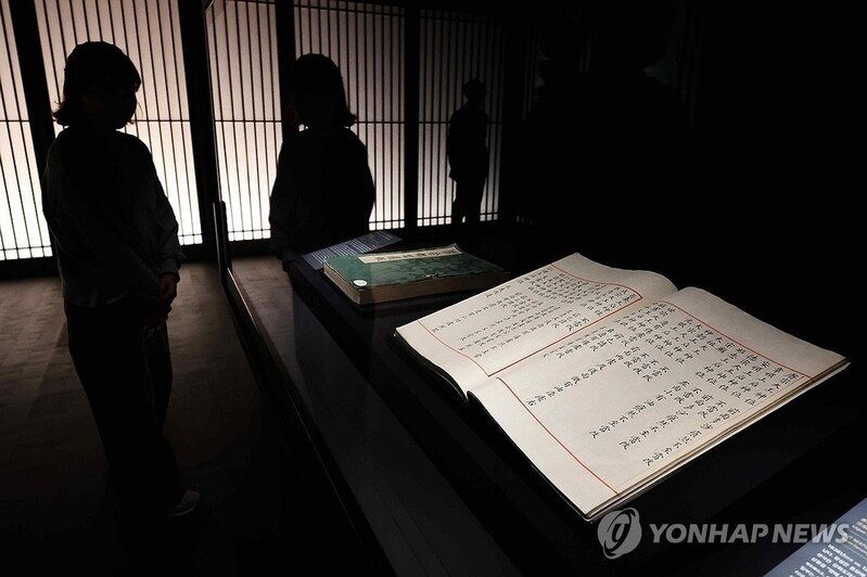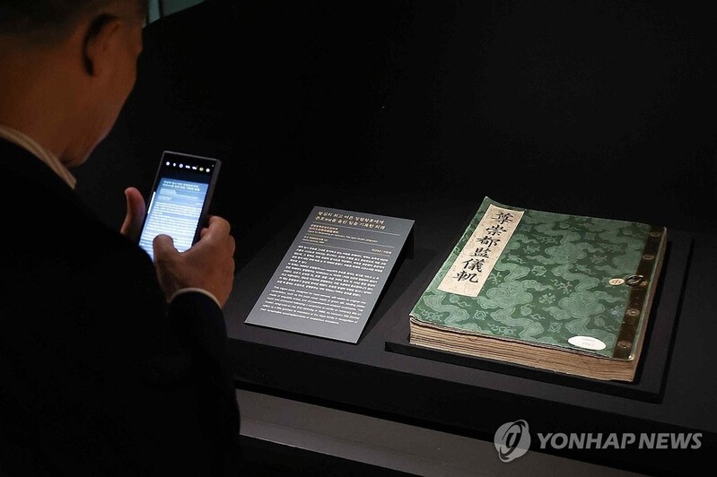 | ▲ 국립중앙박물관, 외규장각 의궤실 공개 (서울=연합뉴스) 서대연 기자 = 14일 오전 서울 용산구 국립중앙박물관 외규장각 의궤실에서 관람객들이 전시물을 살펴보고 있다. 국립중앙박물관은 15일부터 외규장각 의궤 전용 전시실을 공개한다고 밝혔다. 조선 왕실 기록물인 외규장각 의궤는 1866년 병인양요 때 프랑스 군에 의해 무단반출 됐다 지난 2011년 145년만에 고국으로 돌아왔다. 2024.11.14 dwise@yna.co.kr |