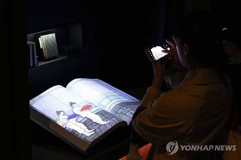 | ▲ 외규장각 의궤 디지털 책 (서울=연합뉴스) 서대연 기자 = 14일 오전 서울 용산구 국립중앙박물관 외규장각 의궤실에서 관람객들이 디지털책 전시물을 살펴보고 있다. 국립중앙박물관은 15일부터 외규장각 의궤 전용 전시실을 공개한다고 밝혔다. 조선 왕실 기록물인 외규장각 의궤는 1866년 병인양요 때 프랑스 군에 의해 무단반출 됐다 지난 2011년 145년만에 고국으로 돌아왔다. 2024.11.14 dwise@yna.co.kr |