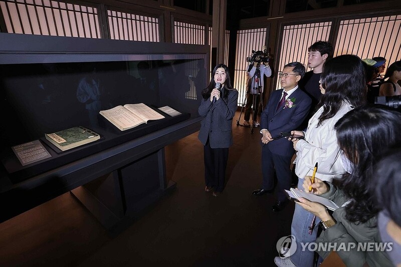 공간 설계를 맡은 김현대 이화여대 건축학과 교수는 "가장 중요한 (외규장각) 의궤를 위한 공간"이라며 "왕의 서고에 달빛이 스며드는 느낌을 더해 공간이 갖는 상징성을 더했다"고 말했다.