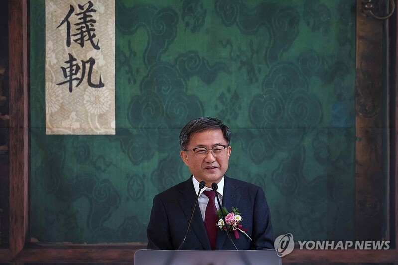 | ▲ 인사말하는 김재홍 관장 (서울=연합뉴스) 서대연 기자 = 김재홍 국립중앙박물관장이 14일 오전 서울 용산구 국립중앙박물관에서 열린 외규장각 의궤실 공개행사에서 인사말을 하고 있다. 국립중앙박물관은 15일부터 외규장각 의궤 전용 전시실을 공개한다고 밝혔다. 조선 왕실 기록물인 외규장각 의궤는 1866년 병인양요 때 프랑스 군에 의해 무단반출 됐다 지난 2011년 145년만에 고국으로 돌아왔다. 2024.11.14 dwise@yna.co.kr |