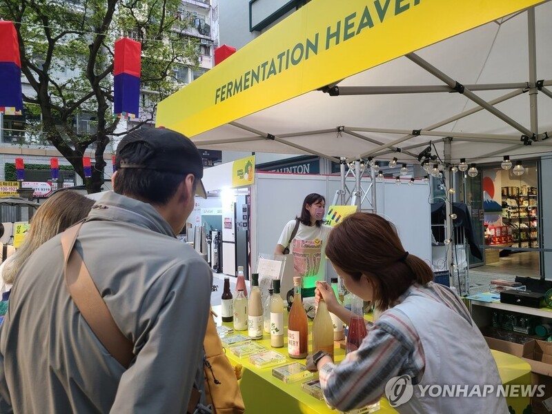 한국 전통 막걸리를 소개하는 코너도 인기였습니다. 방문객들은 막걸리를 한잔씩 시음해보며 많은 관심을 보였습니다.