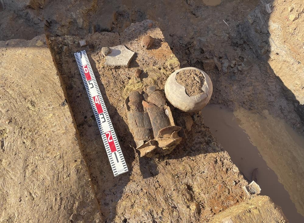 그 안에서는 짧은 목 항아리, 솥 모양 토기 등이 발견됐다. 이들 유물은 대지를 조성하는 과정에서 제사나 각종 의례를 지낸 흔적으로 추정된다.
