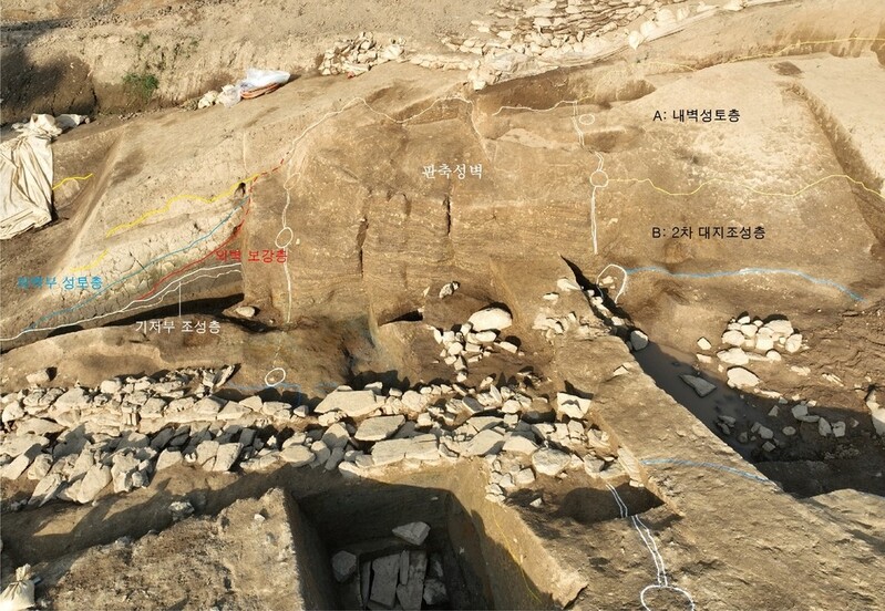 성벽은 흙을 시루떡처럼 차곡차곡 다져가며 쌓아 올리는 판축 기법으로 중심 토루(土壘·흙으로 쌓아 둔덕지게 만든 방어용 시설)를 쌓은 것으로 파악됐다.