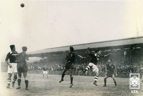 | ▲ 한국 축구가 A매치 첫 승리를 거뒀던 1948년 런던올림픽 1차전 멕시코전 경기 장면. [대한축구협회 제공. 재판매 및 DB 금지] |