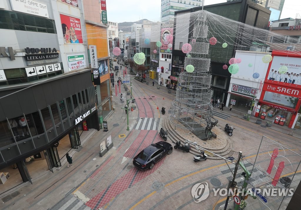 | ▲ 코로나 재확산에 텅 빈 부산 광복로 (부산=연합뉴스) 박성제 기자 = 부산 사회적 거리두기 2단계 격상 첫날인 1일 중구 광복로가 한산한 모습을 보이고 있다. 2020.12.1 psj19@yna.co.kr |