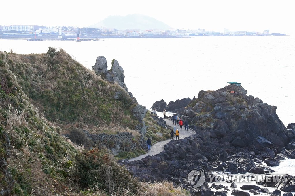 | ▲ 겨울 해변 산책 (제주=연합뉴스) 박지호 기자 = 4일 오후 제주시 애월읍 한담해변에서 관광객들이 산책하고 있다. 2020.12.4 jihopark@yna.co.kr |