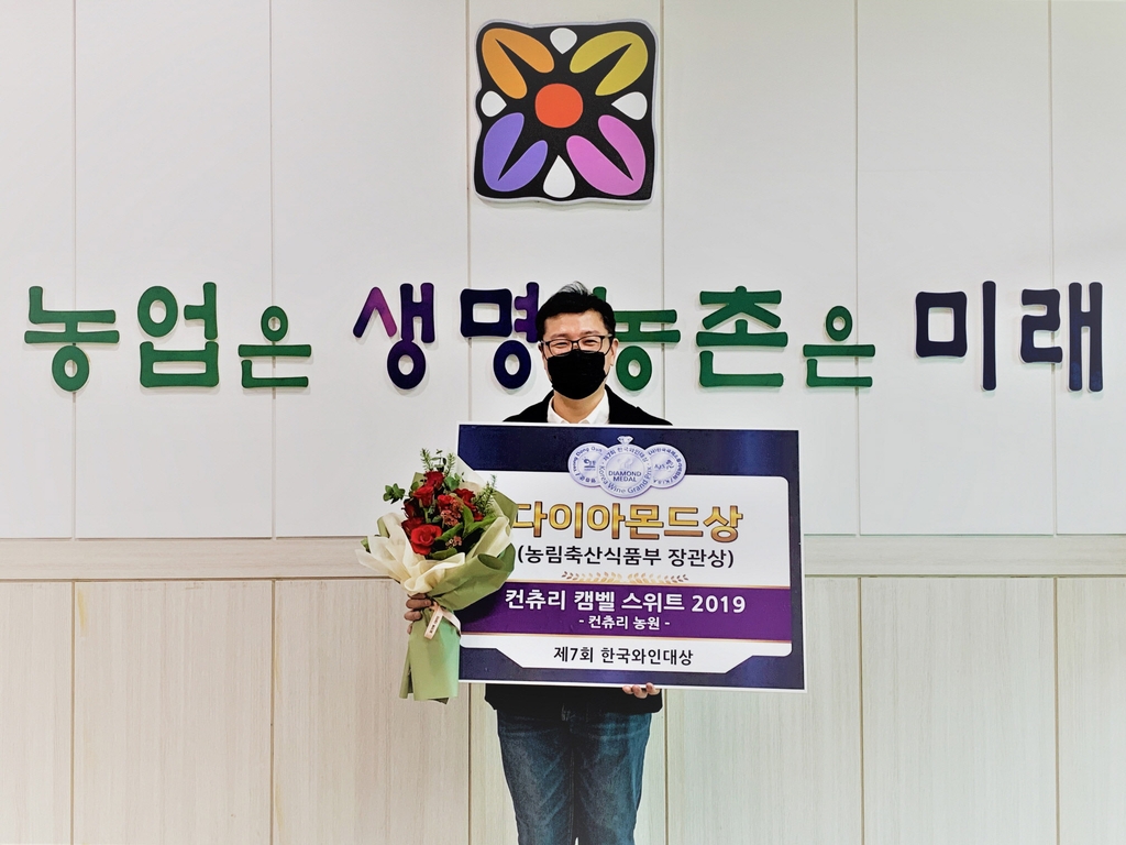 (영동=연합뉴스) 심규석 기자 = 충북 영동군은 한국소믈리에협회가 주관한 제7회 한국와인대상에서 관내 컨츄리농원의 '컨츄리 캠벨 레드 스위트 2019'가 다이아몬드상(농림축산식품부 장관상)을 받았다고 11일 밝혔다.