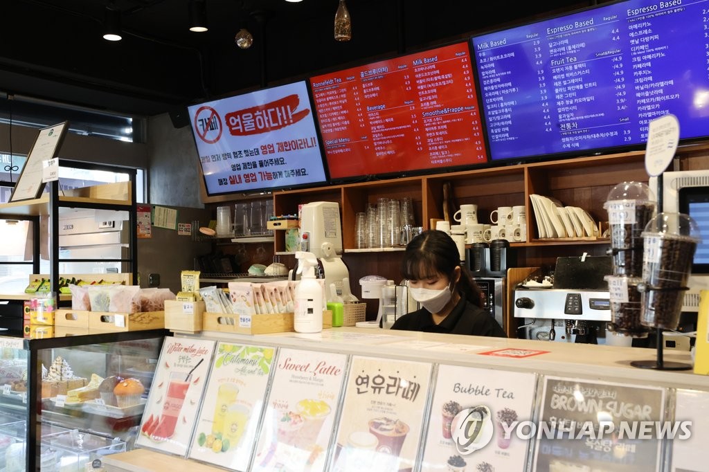 | ▲ This file photo shows a sign (top left) criticizing the government's COVID-19 business restrictions at a cafe in southern Seoul on Jan. 6, 2021. (Yonhap) |