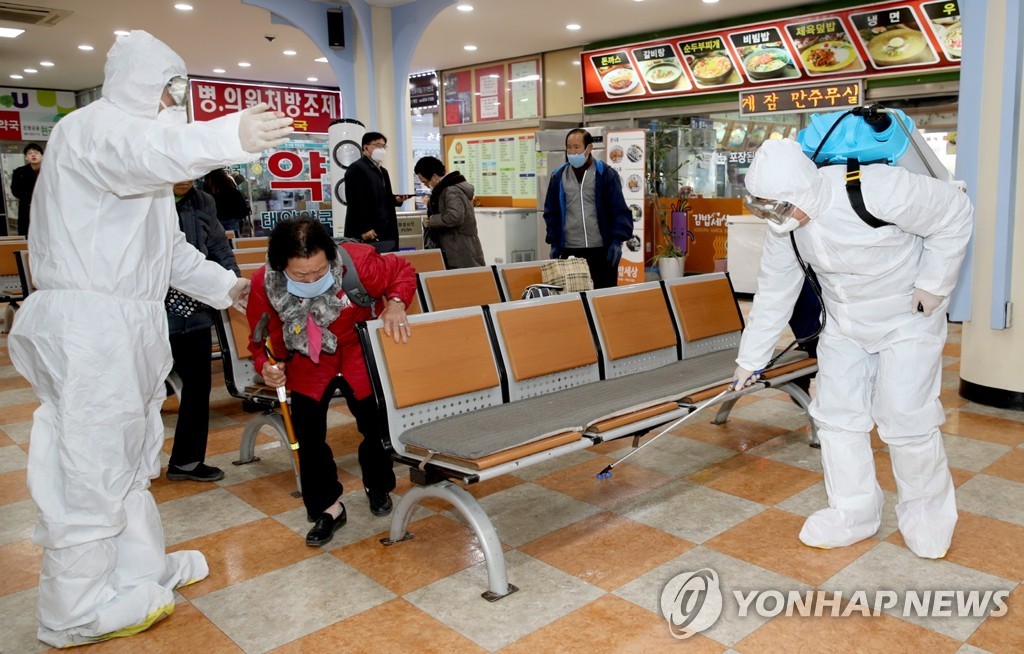 | ▲ Health officials disinfect a public bus terminal in Taean, 144 kilometer southwest of Seoul, to prevent COVID-19 from spreading on March 18, 2021, in this provided by the county government. (PHOTO NOT FOR SALE) (Yonhap) |