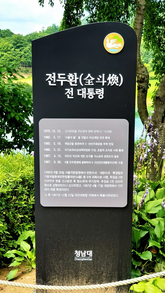 전 전 대통령 안내판에는 ▲ 군사반란을 주도해 권력 장악(12·12사태) ▲ 계엄군을 동원해 5·18민주화 운동 무력 진압 ▲ 초법적 조치로 사회 통제 등 그의 과오를 명시했다.
