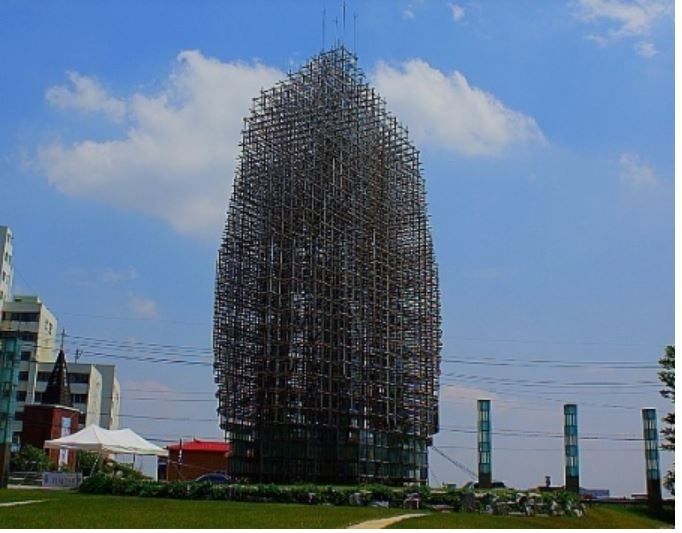 언뜻 보기에 미완성 철탑처럼 보이는 이 조형물의 명칭은 이천의 미래라는 뜻을 담은 '이래탑(利來塔)'.