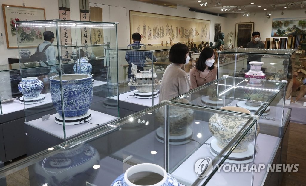 | ▲ 특별전시 '한중 문화유산 재발견' (서울=연합뉴스) 강민지 기자 = 27일 오전 서울 종로구 다보성갤러리에서 열린 '한중 문화유산 재발견' 간담회에서 참석자들이 중국관 전시를 둘러보고 있다. 2021.9.27 mjkang@yna.co.kr |