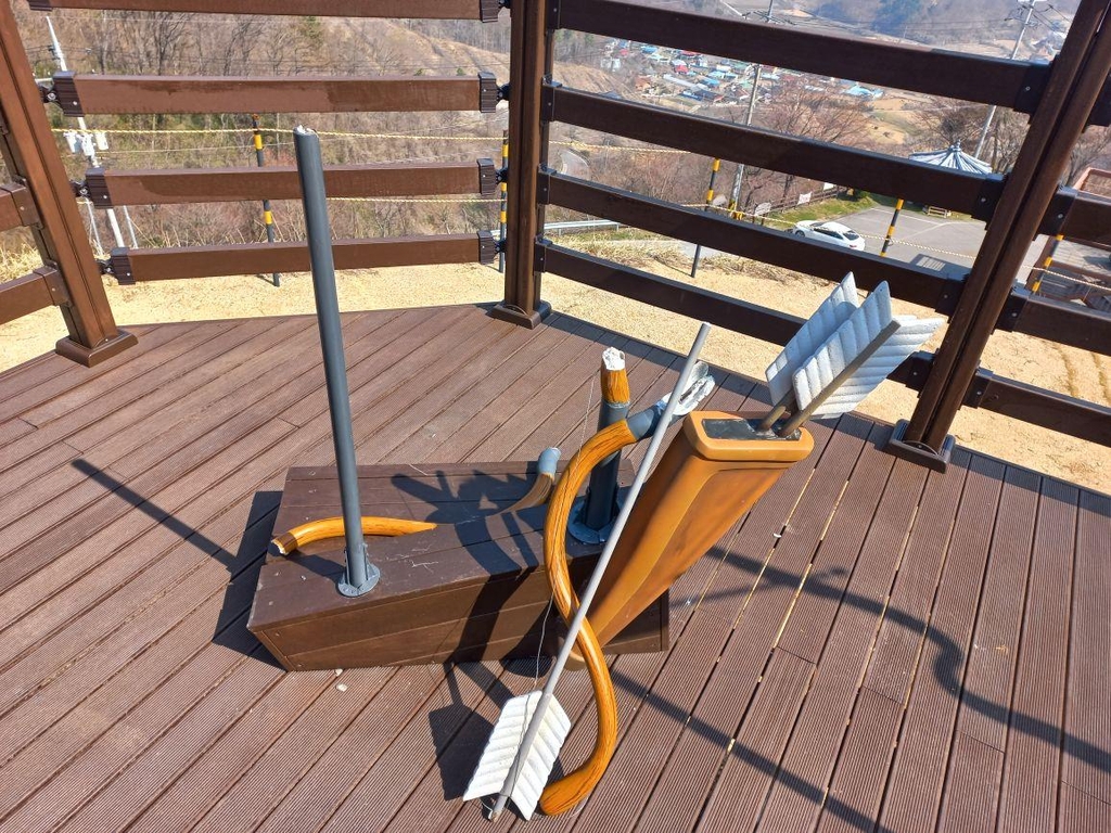 군은 작년 11월 지역특화사업비 7억원을 들여 궁촌재에 육교와 높이 20m, 면적 220㎡ 규모의 전망대를 조성한 데 이어 500만원짜리 망원경과 3천만원 상당의 활 조형물 2개를 설치했다.
