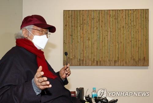 | ▲ (서울=연합뉴스) 이재희 기자 = 15일 오전 서울 종로구 국제갤러리에서 개인전을 열고 있는 하종현 화백이 전시 간담회를 하고 있다. |