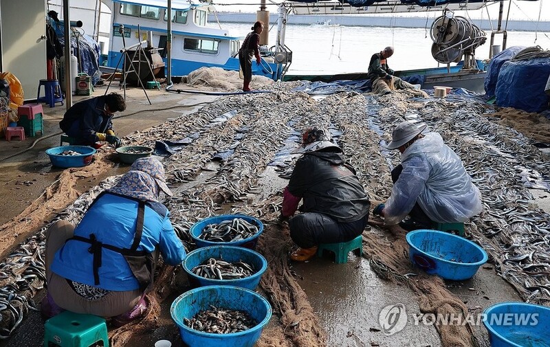 | ▲ 동해안 겨울별미 양미리 (강릉=연합뉴스) 유형재 기자 = 1일 강원 강릉시 주문진항에서 주민들이 조업이 시작된 동해안 겨울별미인 양미리를 그물에서 떼어내는 작업으로 바쁘다. 2023.11.1 yoo21@yna.co.kr |