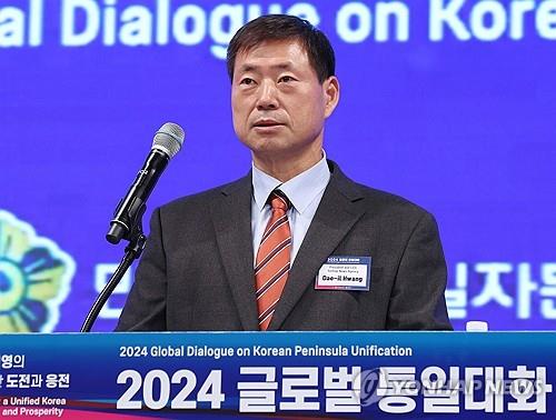▲ Yonhap News Agency President and CEO Hwang Dae-il delivers a welcome address during the 2024 Global Dialogue on Korean Peninsula Unification in Seoul on Nov. 12, 2024. (Yonhap) |
