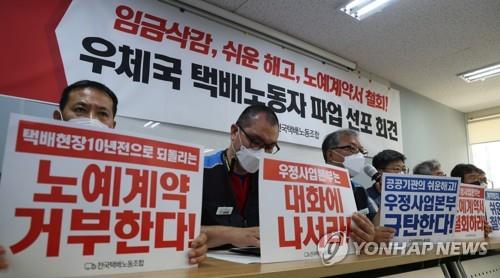 The Parcel Delivery Workers' Solidarity Union said its members affiliated with the state postal service, the Korea Post, will walk off the job Saturday and stage simultaneous sit-ins across the country starting Monday.
