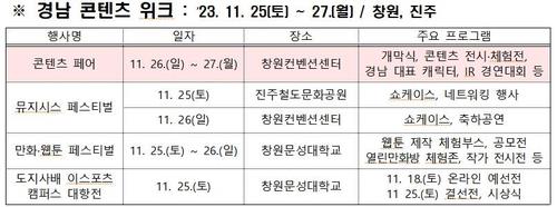 | ▲ 경남 콘텐츠 위크 행사 개요 [경남도 제공. 재판매 및 DB 금지] |