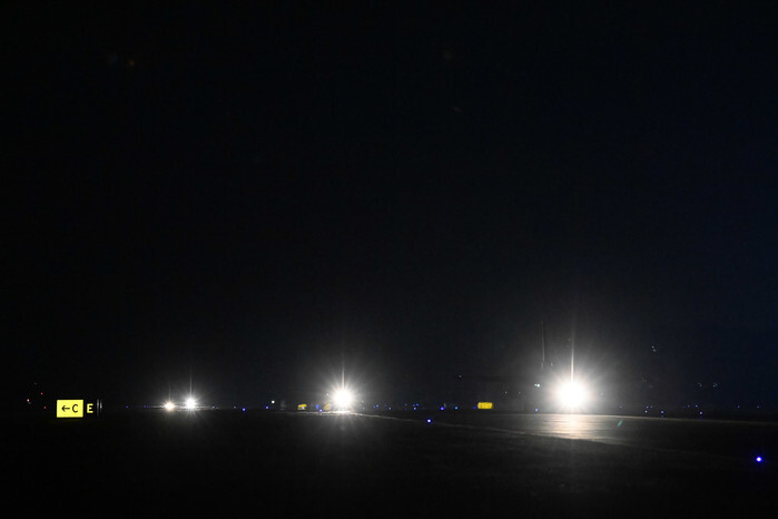 FA-50 fighters prepare to take off on the night of Aug. 19, 2024, to participate in a joint drill involving five South Korean and U.S. combat squadrons, conducting round-the-clock flights in multiple airspaces as part of the ongoing Ulchi Freedom Shield, a 10-day annual South Korea-U.S. military exercise. The Air Force provided this photo. (PHOTO NOT FOR SALE) (Yonhap)