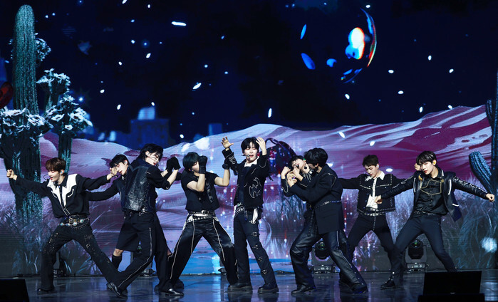 South Korean boy group Zerobaseone performs during a showcase for the group's third mini album "You had me at HELLO" in Seoul on May 13, 2024. (Yonhap)