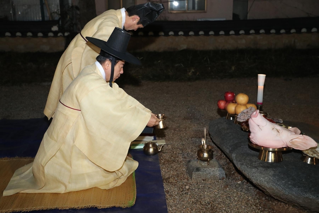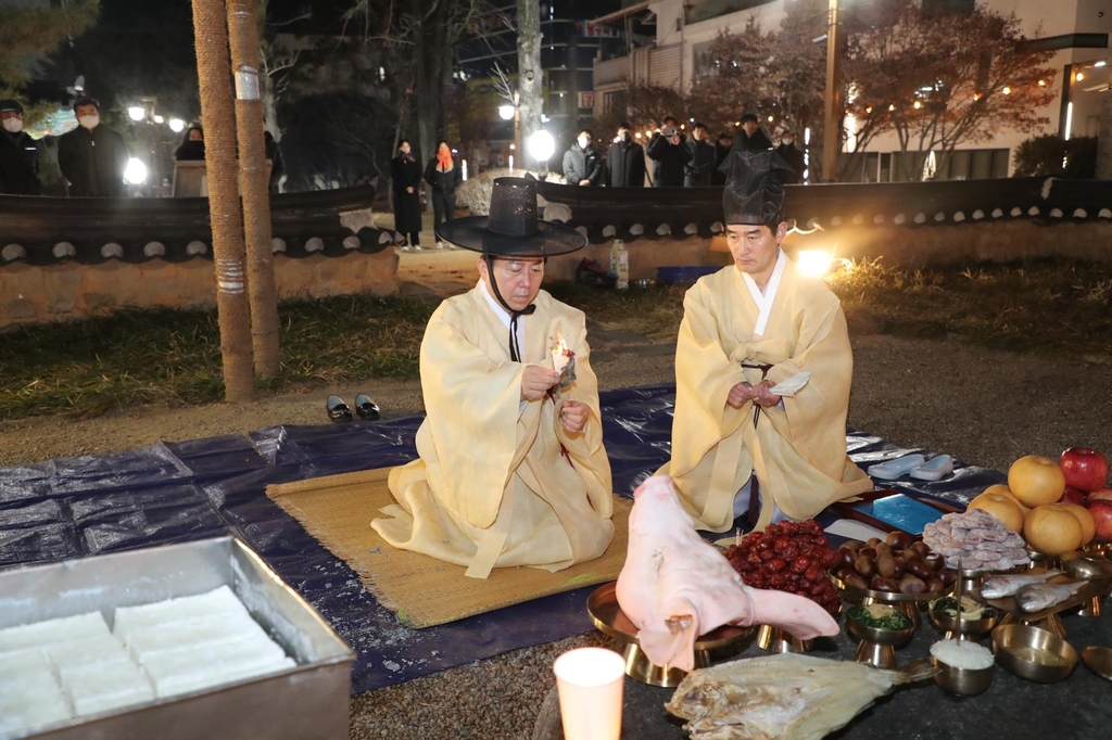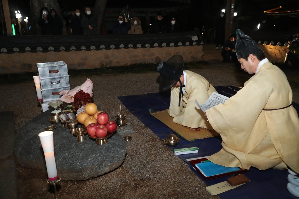 (안동=연합뉴스) 손대성 기자 = 정월대보름을 맞아 고을 책임자가 신령스러운 나무에 제사를 지내는 경북 안동의 독특한 풍습이 재현됐다.