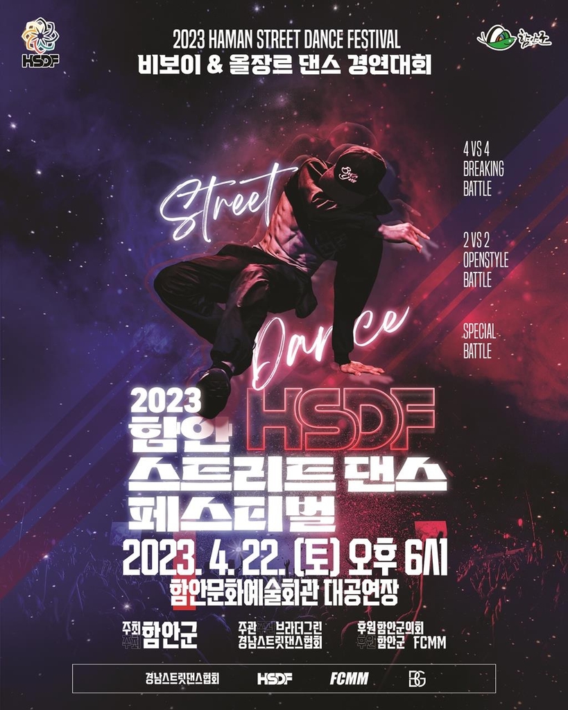 행사에는 함안군 출신 세계적 비보이 김효근 씨도 심사위원으로 참여한다.