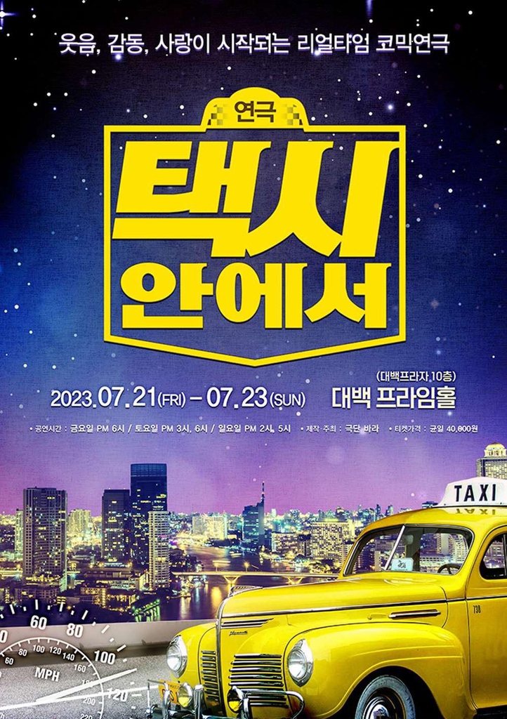 (대구=연합뉴스) 류성무 기자 = 극단 '바라'는 오는 21∼23일 대구 중구 대봉동 대백프라자 10층 프라임홀에서 코믹 연극 '택시 안에서'를 무대에 올린다.