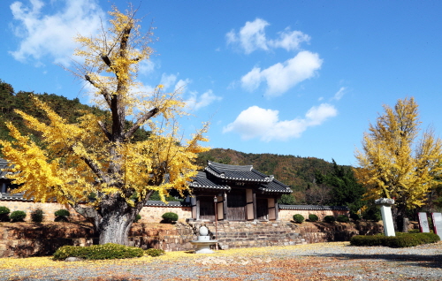 전남 장흥군 유치면 강성서원(江城書院)을 지키고 있는 수백 년 나이의 은행나무가 황금빛으로 물들었다.