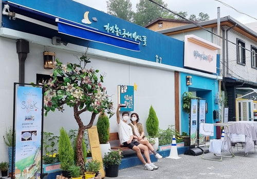 (정선=연합뉴스) 이재현 기자 = 야생화가 가득한 정겨운 골목길로 널리 알려진 정선 고한 야생화 마을에서 '야생화 오즈로드'(Oz Road) 선포식이 23일 마을호텔 18번가 골목길에서 열렸다.