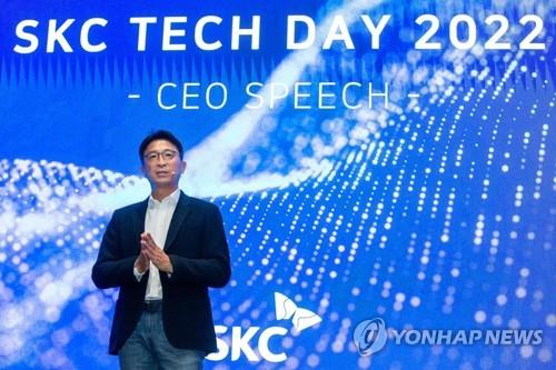 | ▲ SKC CEO Park Won-cheol delivers a keynote speech during a company tech day in Seoul on Nov. 23, 2022. (PHOTO NOT FOR SALE) (Yonhap) |