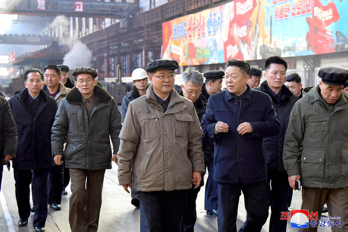 North Korean Premier Pak Thae-song (C) inspects the Kim Chaek Iron and Steel Complex in Chongjin, North Hamgyong Province, northeastern North Korea, in this undated photo released by the North's official Korean Central News Agency on Feb. 24, 2025. (For Use Only in the Republic of Korea. No Redistribution) (Yonhap)
