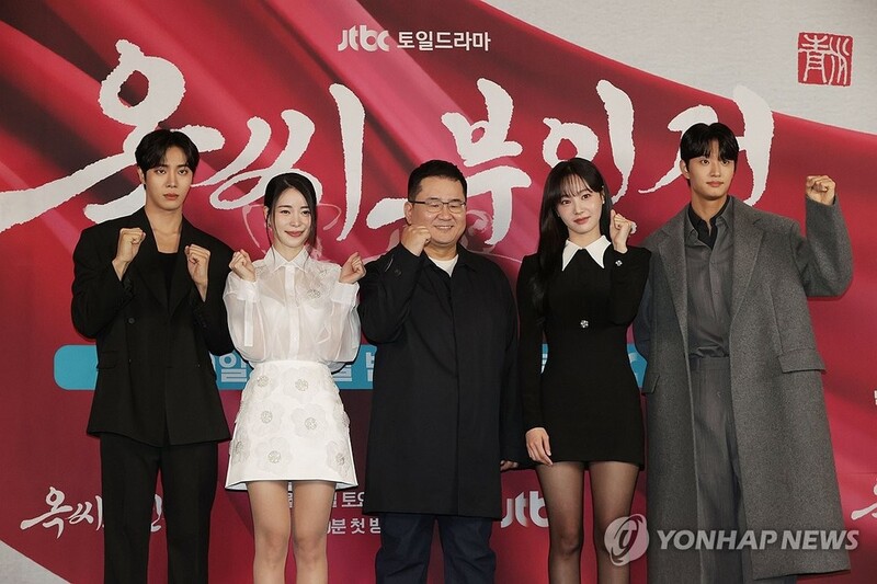 | ▲ 드라마 '옥씨부인전' 제작발표회 (서울=연합뉴스) 강민지 기자 = 28일 오후 서울 구로구 라마다 서울 신도림 호텔에서 열린 JTBC 토일드라마 '옥씨부인전' 제작발표회에서 감독과 배우들이 포즈를 취하고 있다. 왼쪽부터 추영우, 임지연, 진혁 감독, 연우, 김재원. 2024.11.28 mjkang@yna.co.kr |