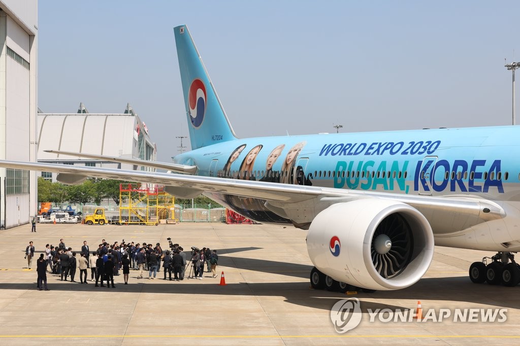 이 항공기는 4일 인천발 파리행 KE901편을 시작으로 전 세계 하늘을 날며 부산엑스포 유치 홍보에 나선다.