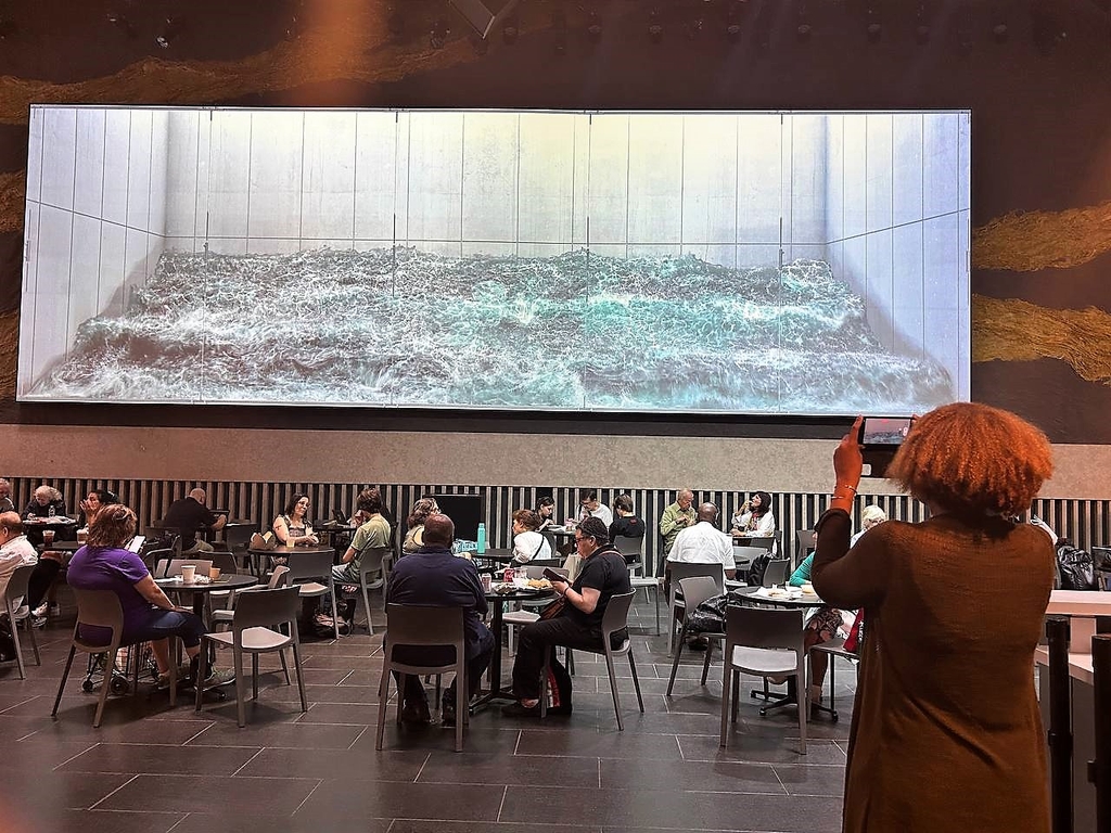 | ▲ 지난 19일(현지시간) 미국 뉴욕시 링컨센터 데이비드 루벤스타인 아트리움(David Rubenstein Atrium) 내 디지털 월에 설치된 디스트릭트의 웨이브 전시. [SK그룹 제공. 재판매 및 DB금지] |