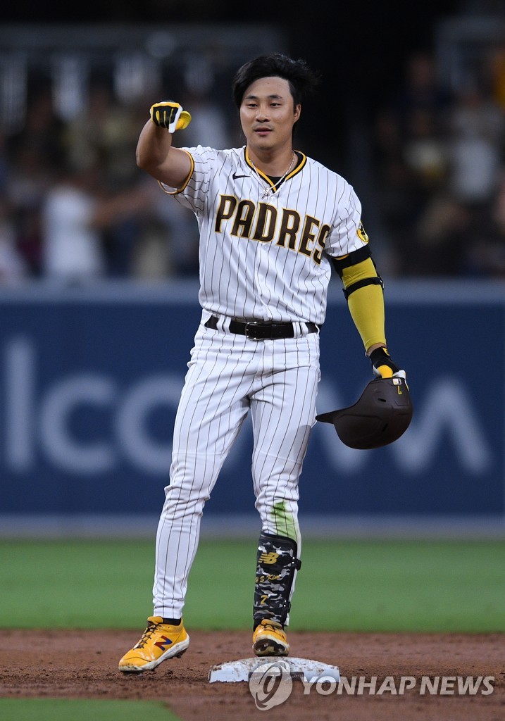 | ▲ 3회말 2타점 2루타 터트린 김하성 [USA 투데이 스포츠=연합뉴스] |