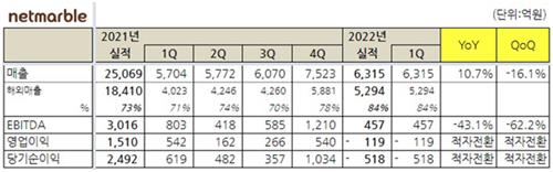 | ▲ 넷마블 2022년 1분기 실적 [넷마블 제공. 재판매 및 DB 금지] |